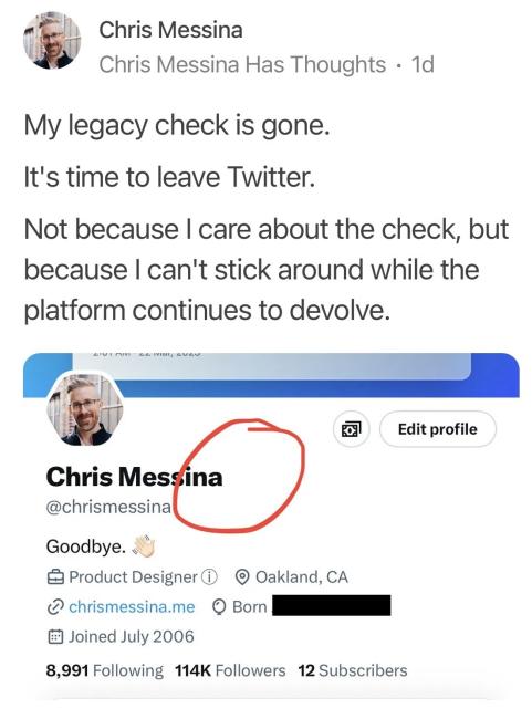 The good news: He is now on #mastodon: @chrismessina.