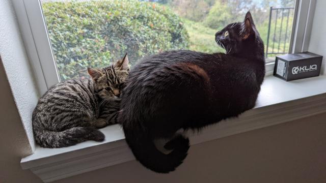 He tore a hole in the curtain so he could climb onto the windowsill, bask in the sun, and mock me.