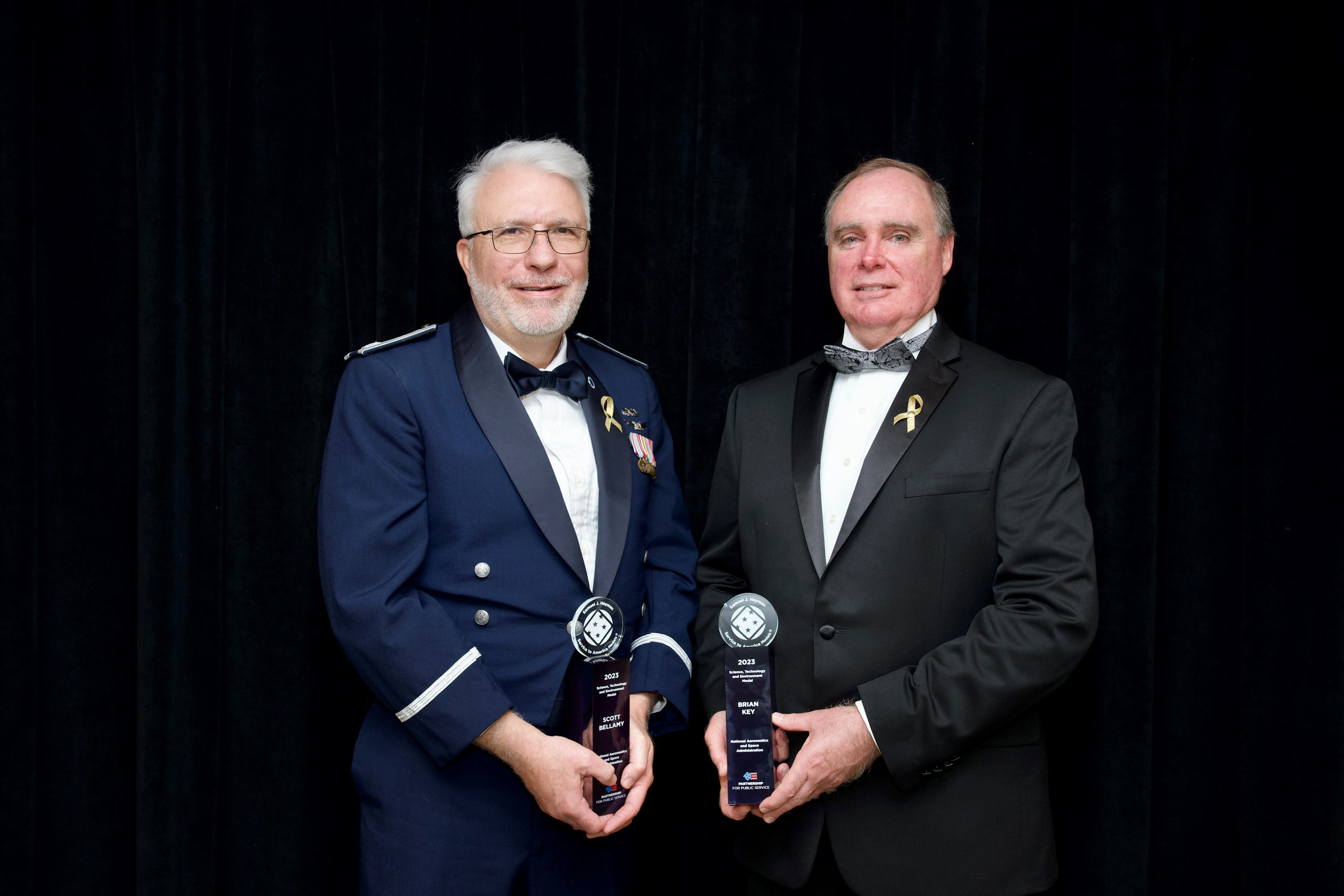 NASA’s Brian Key and Scott Bellamy accepted the Samuel J. Heyman Service to America Medal on behalf of a mission team for the first planetary defense testClaire A. O'Shea (NASA)