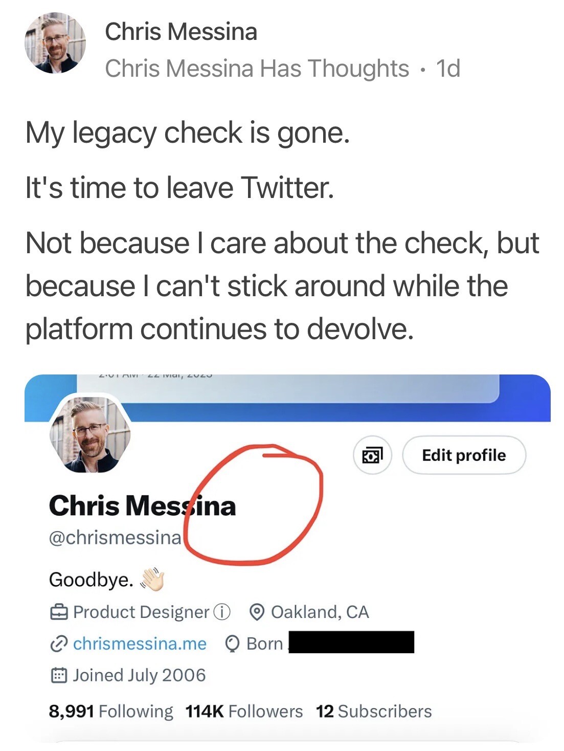 The good news: He is now on #mastodon: @chrismessina.