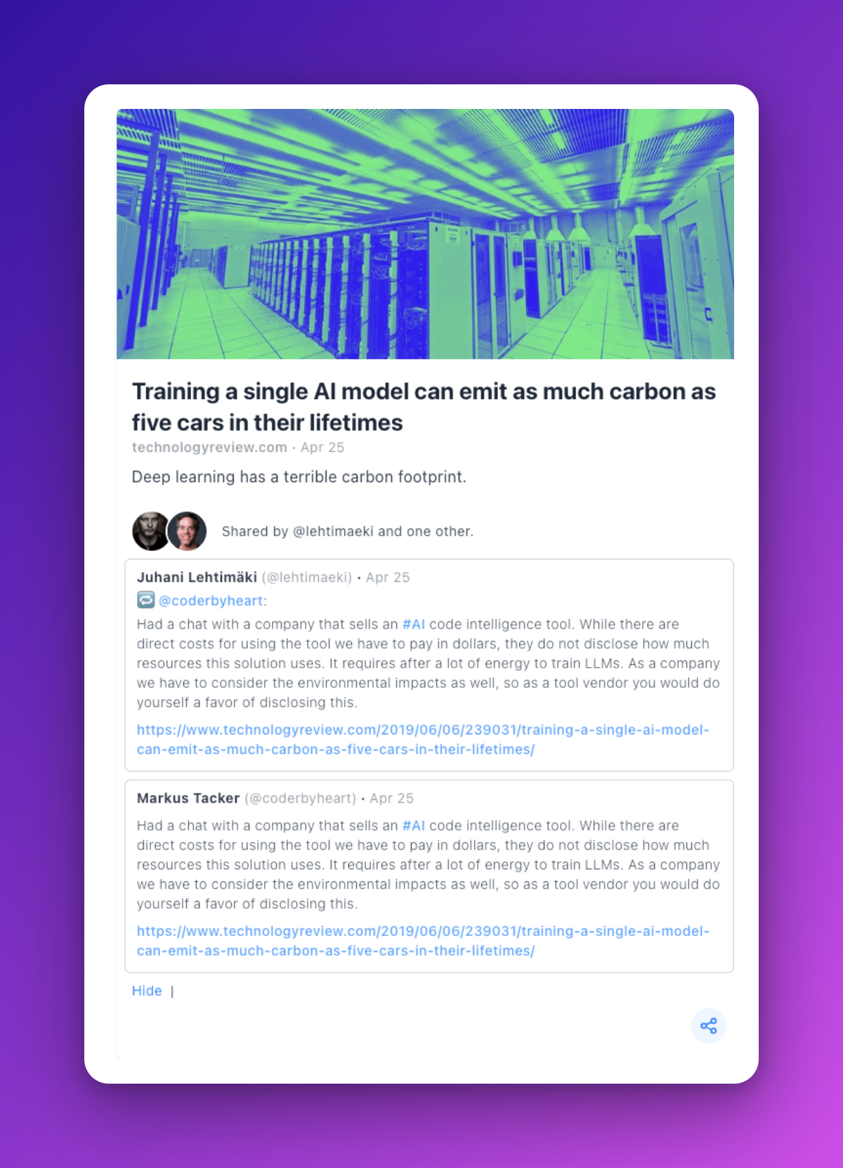 Because people were saying things like "This PR was not reviewed thoroughly, as #Mastodon is a decentralized way to access the Fediverse, so pushing a specific server is not beneficial for the network."