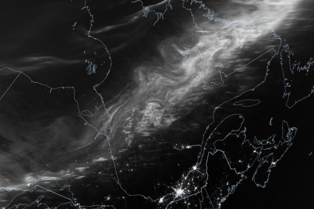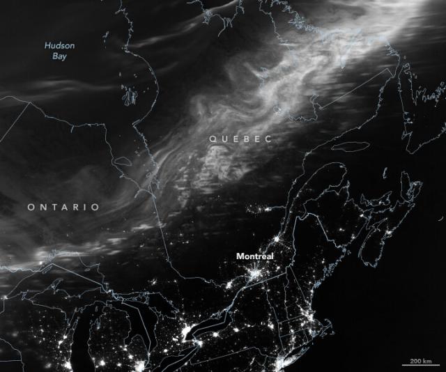 Nope, but it looks that way! The oblique angle of the photo, taken from the @Space_Station, along with shadows from New York City skyscrapers give the photograph a sense of three-dimensionality.