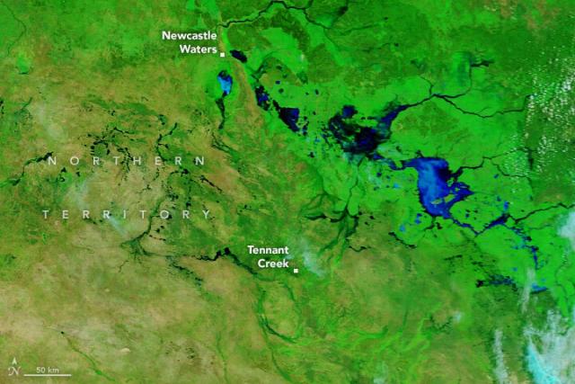 Days of rain have swollen rivers and lakes in the sparsely populated territory.go.nasa.gov