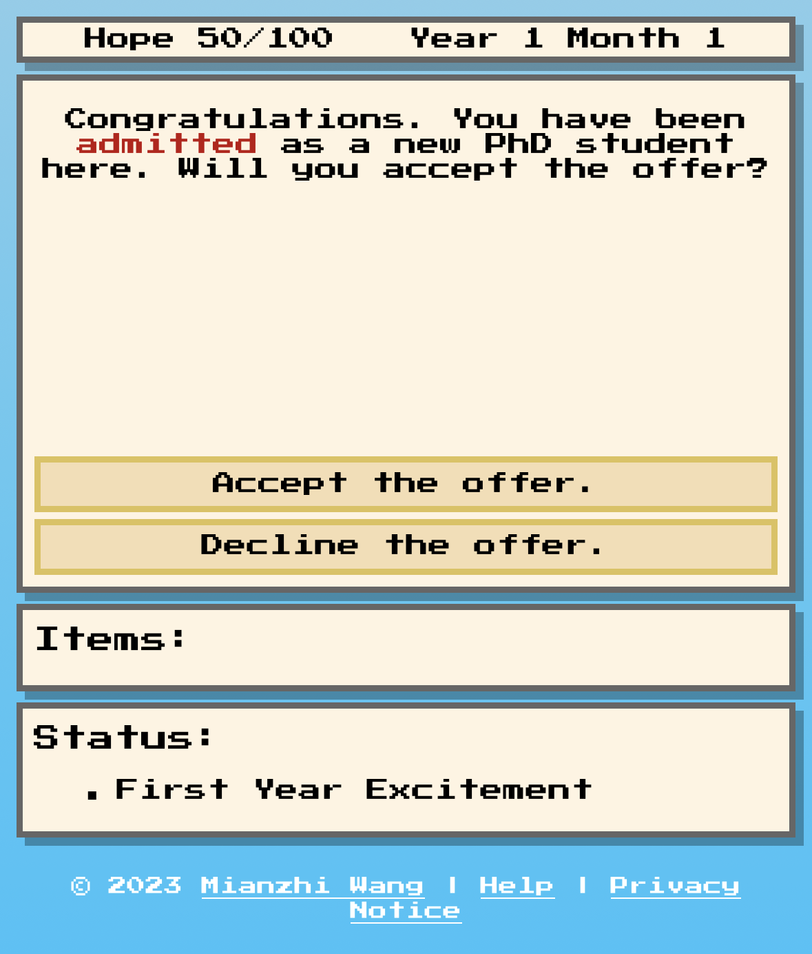 PhD Simulator - A Text-Based Game by Mianzhi Wang