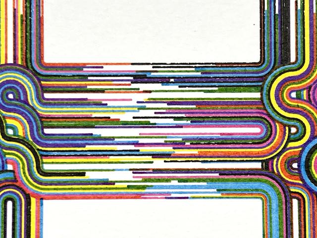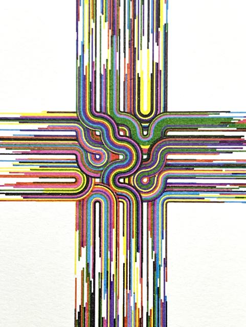 CMYK archival inks on 11x15 watercolor paper using a vintage HP 7585B pen plotter generated and controlled with Python.