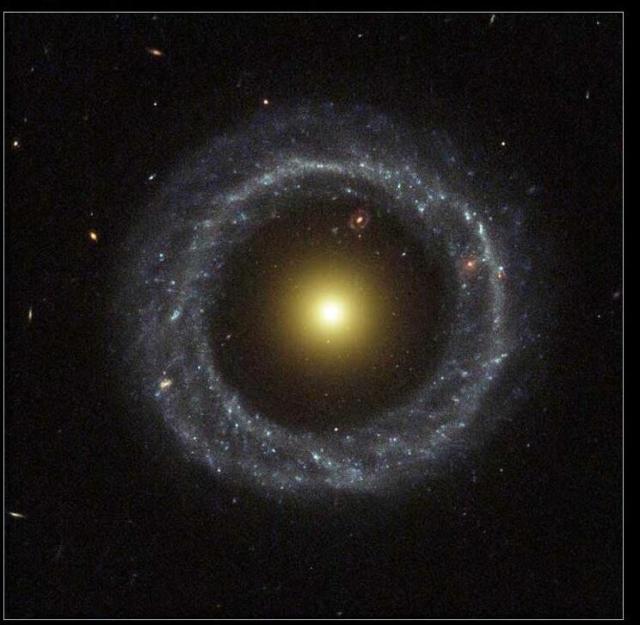Look closely around the 1 o'clock position to see another distant ring galaxy in the background.
