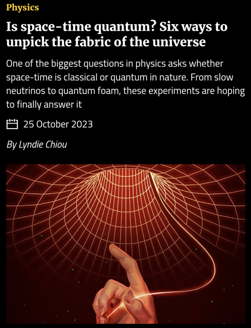My 1st cover story! For New Scientist about experiments that are close to telling us if spacetime is quantized. And a Q&A with a physicist who is simulating space-time from scratch!