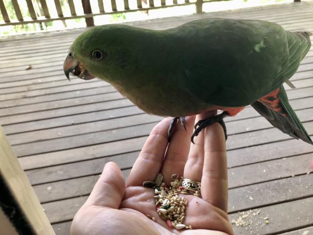 This wee chap has overcome his wariness and happily sits on my hand to have some seed.YouTube