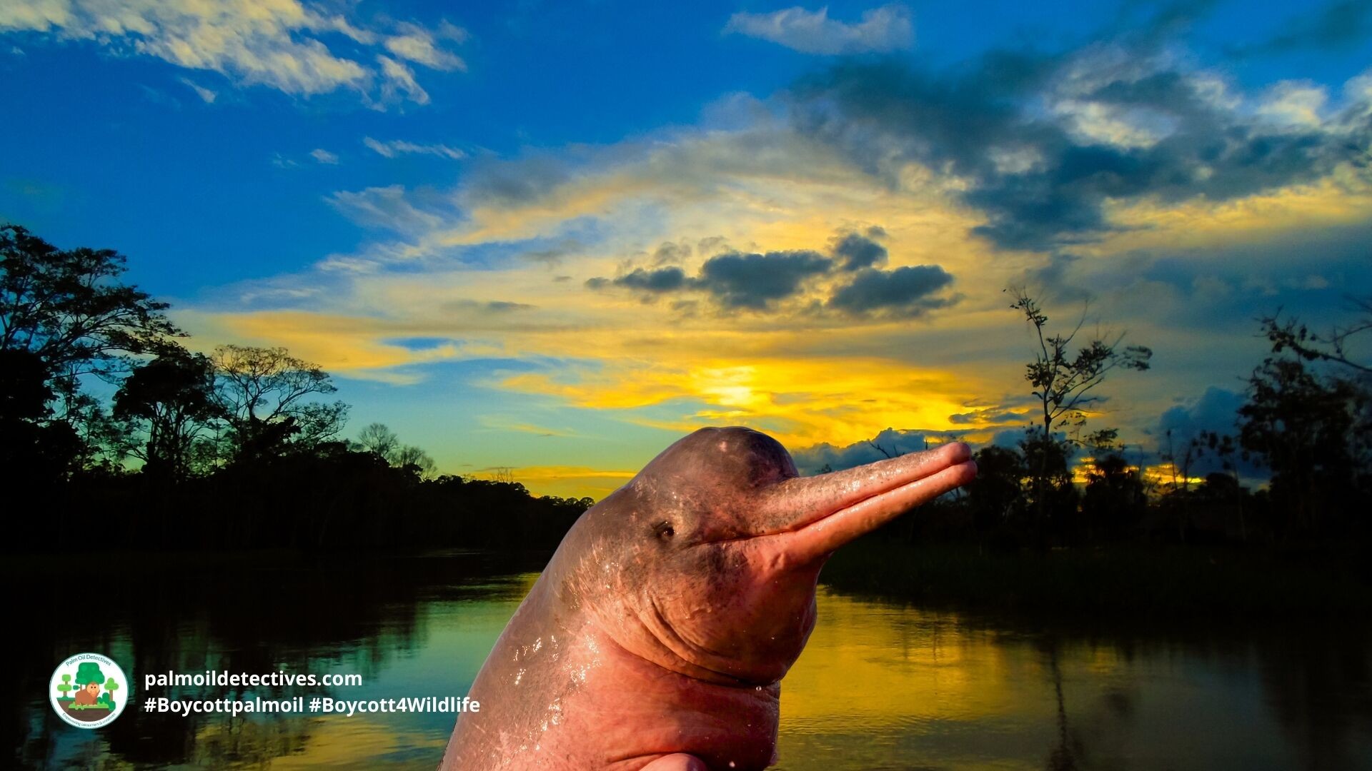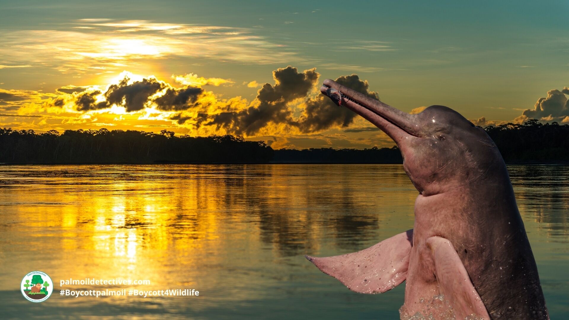 Tucuxi, small freshwater dolphins of Peru Ecuador Colombia and Brazil are Endangered due to fishing nets, deforestation, mercury poisoning from gold mining.Palm Oil Detectives