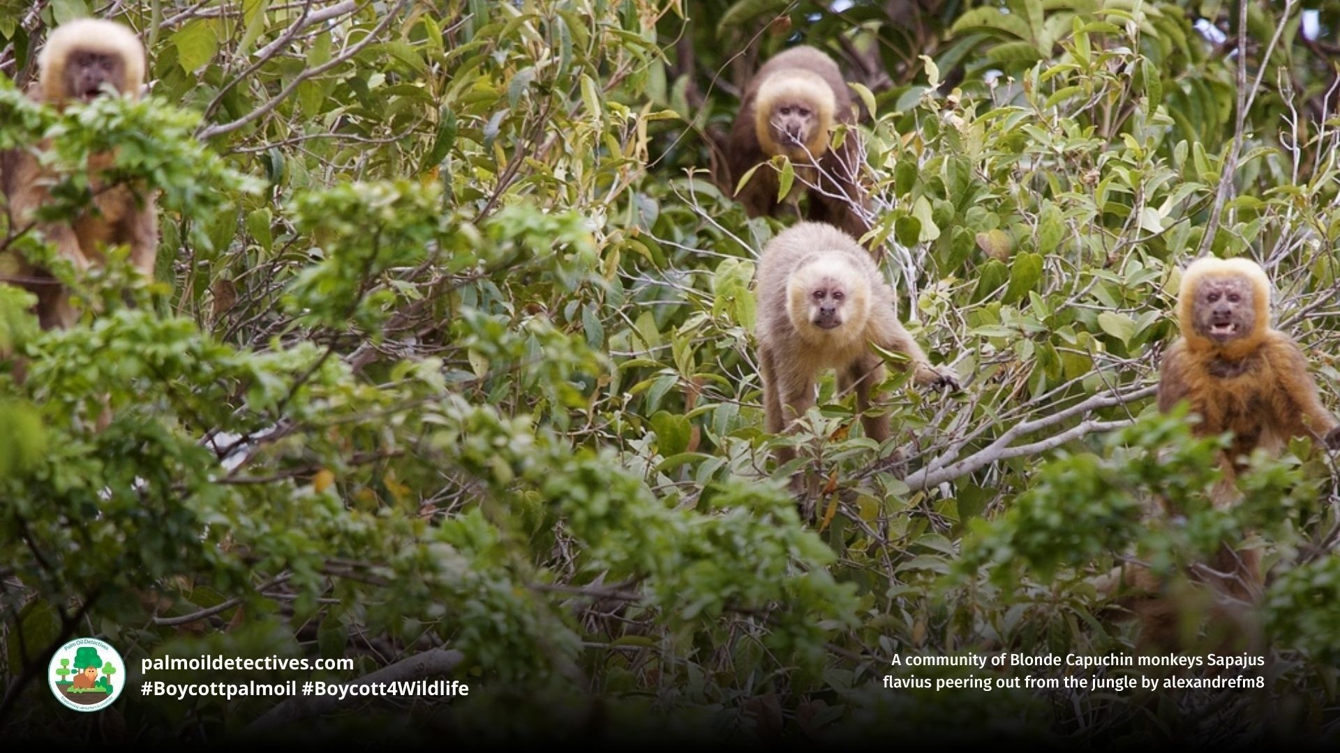 Only rediscovered in 2006, Blonde Capuchins are highly intelligent critically endangered primates of Brazil threatened by palm oil and meat deforestationPalm Oil Detectives