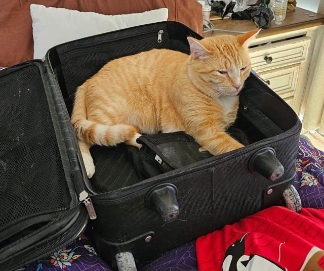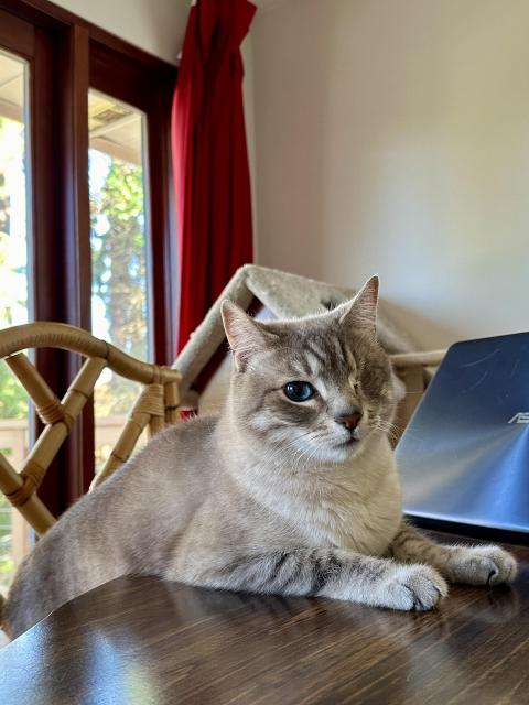 Waffles the Cat, composing a song about flying with the birbs. And chomping them.