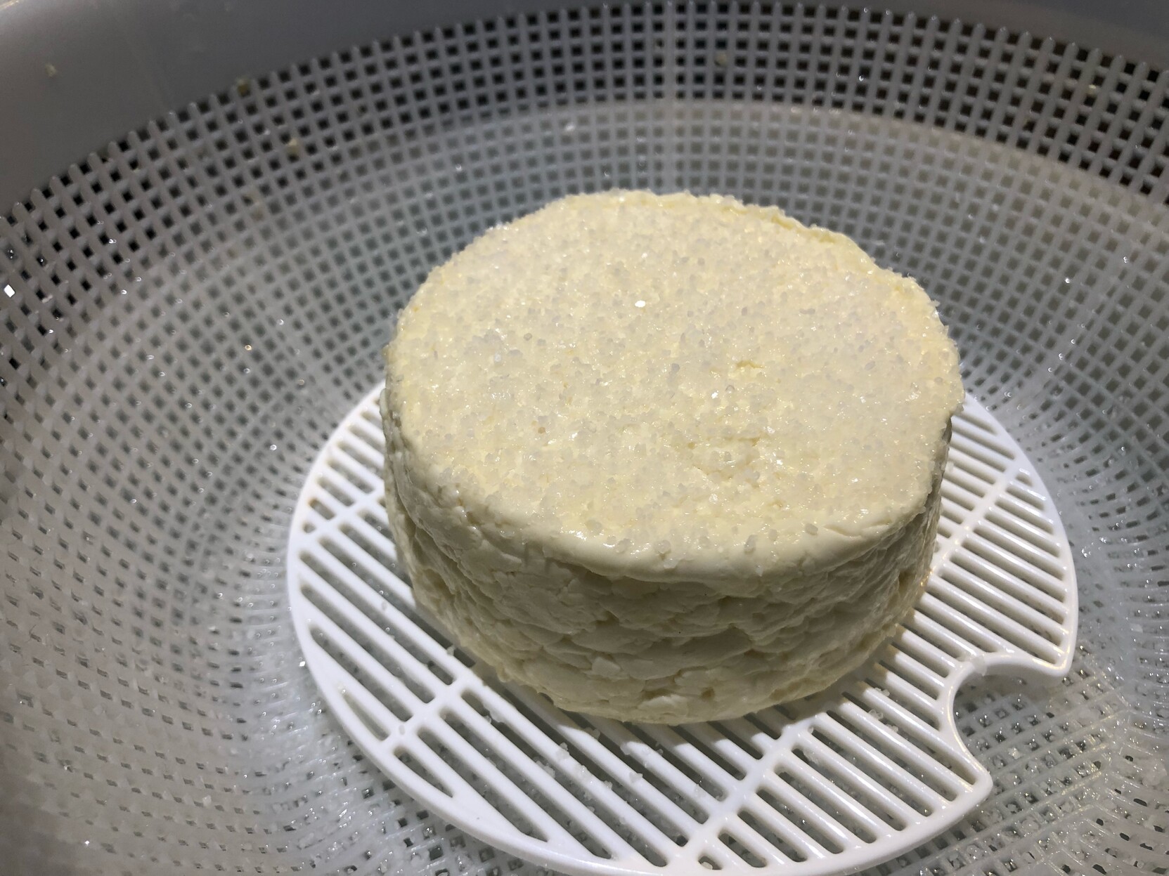 One small proto-cheese. I’ll get a bit smaller over the next 5 days or so, and then we’ll eat it. #cheese