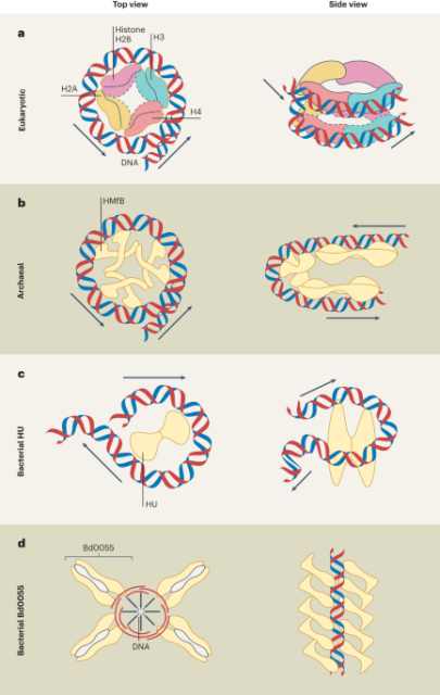 Computational, molecular and structural analyses reveal the presence of bacterial histones that bind DNA to form dense, DNA-enveloping fibres in Bdellovibrio bacteriovorus.Nature