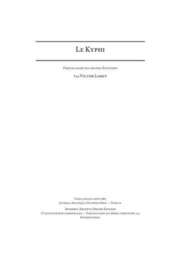 Le Kyphi, Parfum sacré des anciens Égyptiens, Par M. Victor Loret. Journal Asiatique, Huitième Série. Tome 10. Juillet-août 1887. Github.Internet Archive