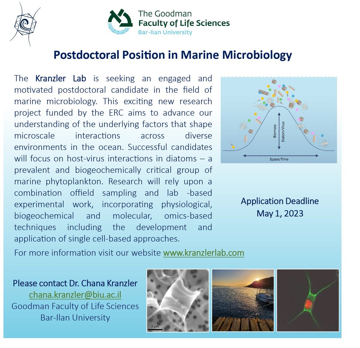 Fantastic postdoc opportunity in the field of #marine #microbiology @BarIlanU - check out kranzlerlab.com