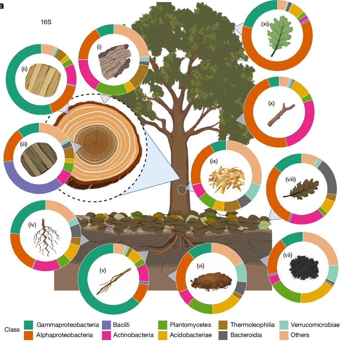"A single tree hosts about one trillion #bacteria in its woody tissue... #microbes are partitioned between heartwood and sapwood with each having its own unique microbiomes with minimal similarity to other tissues... They are actively producing gases and cycling nutrients... these communities may have coevolved with #trees over time"