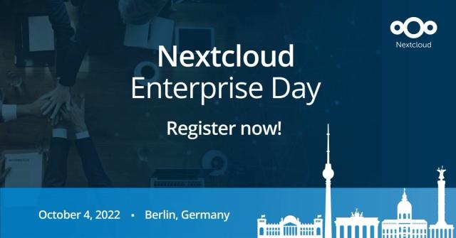 Level up collaboration in your organization! Join the #Nextcloud Enterprise day on October 4, 2022, in Berlin!