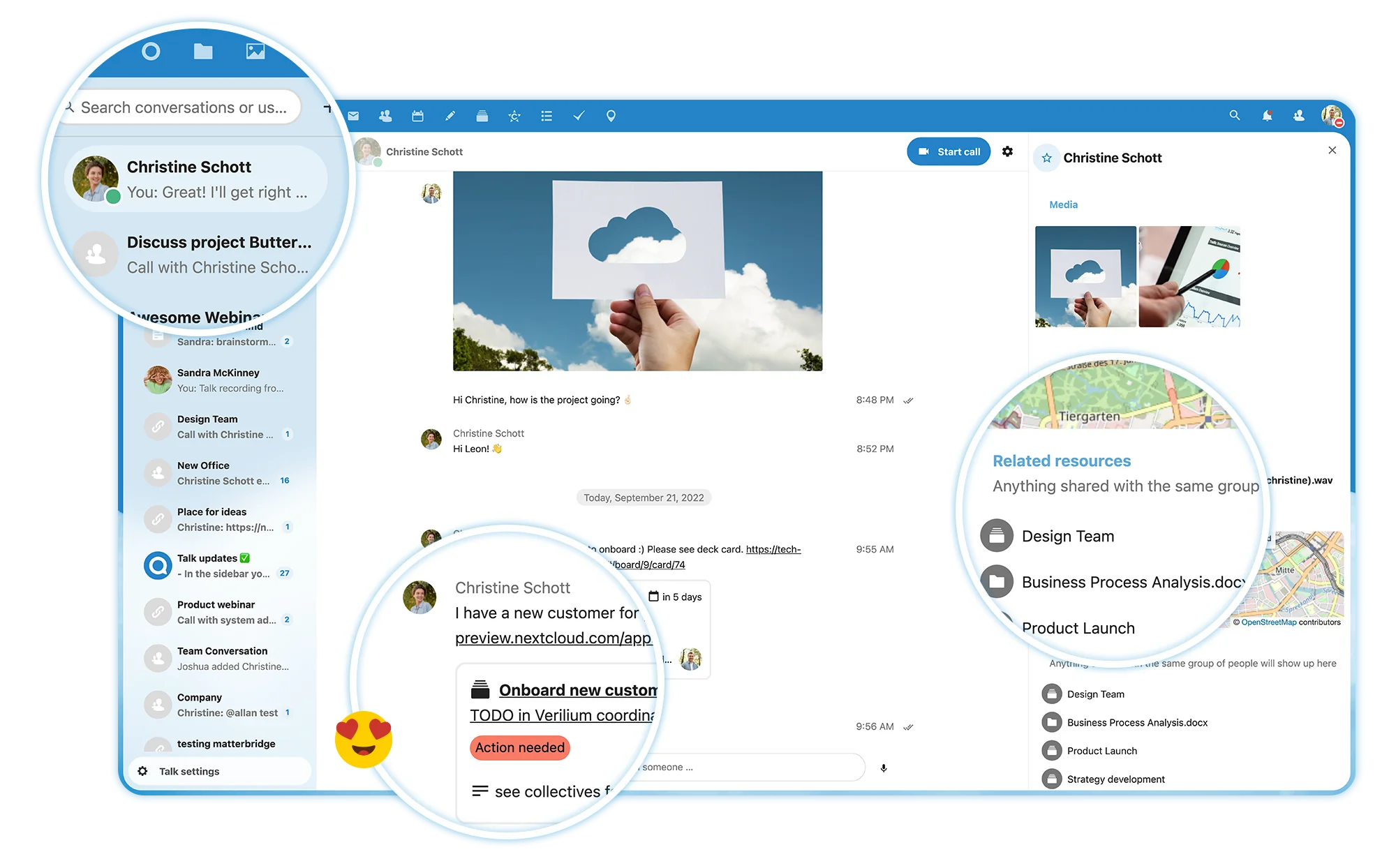 Nextcloud Talk is your answer to Microsoft Teams: a flexible, secure, and private communication platform for modern teams, both on desktop and mobile.