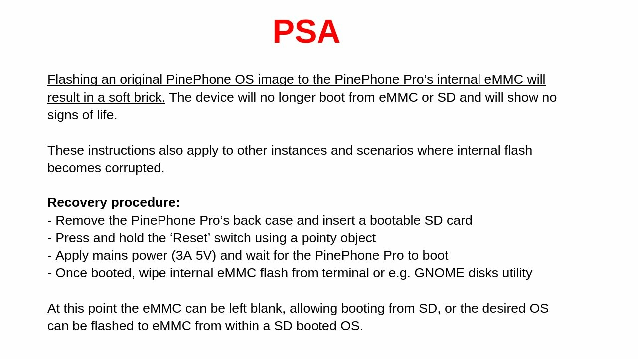 PSA: Do *NOT* flash OG #PinePhone OS images to the #PinePhonePro. If you do, however, here are recovery instructions.
