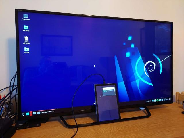 #PineTab2 running mainline #Linux kernel video out to an external monitor 😀