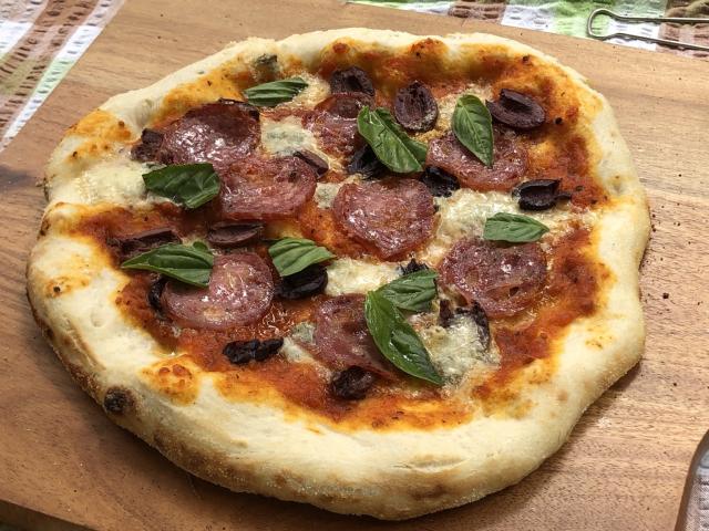 I went with 70% hydration this time, and it definitely puffs up more and feels lighter to eat. However, it is more likely to stick to the peel, making it more difficult to deal with.