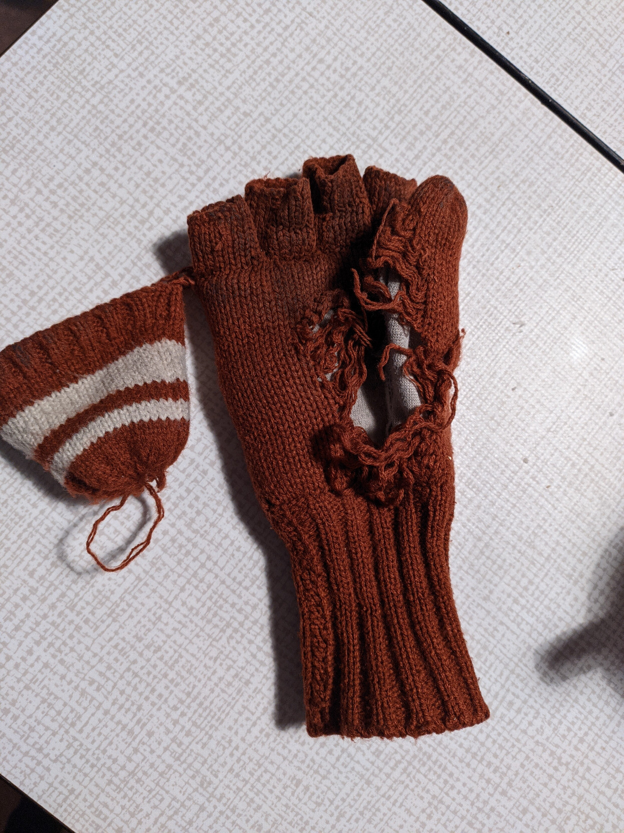 My 6 year old found the glove of a friend and he took it home. I felt challenged and made a quick #crochet #repair on the worn out glove. Crochet is very flexible, you can add stitches, you can skip them, without a great effort. It's quite organic. I hope his friend will like it.