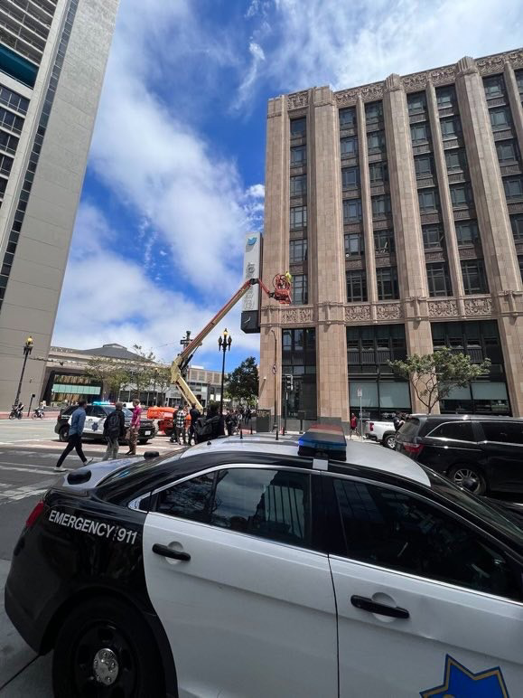 Musk failed to get the necessary permits to change Twitter’s building signage to X, and the police shut it down just in time for “er” to remain. #twitter #tech #elonmusk #x #twittermigration #twitterlogo #elon #musk