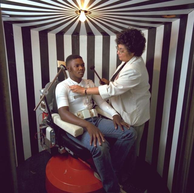 Psychophysiologist Dr. Patricia Cowlings designed a methodology to help astronauts control symptoms of motion sickness in space. She is shown here conducting a training exercise experiment in 1986. #ArchivesHashtagParty #ArchivesBlackDesign