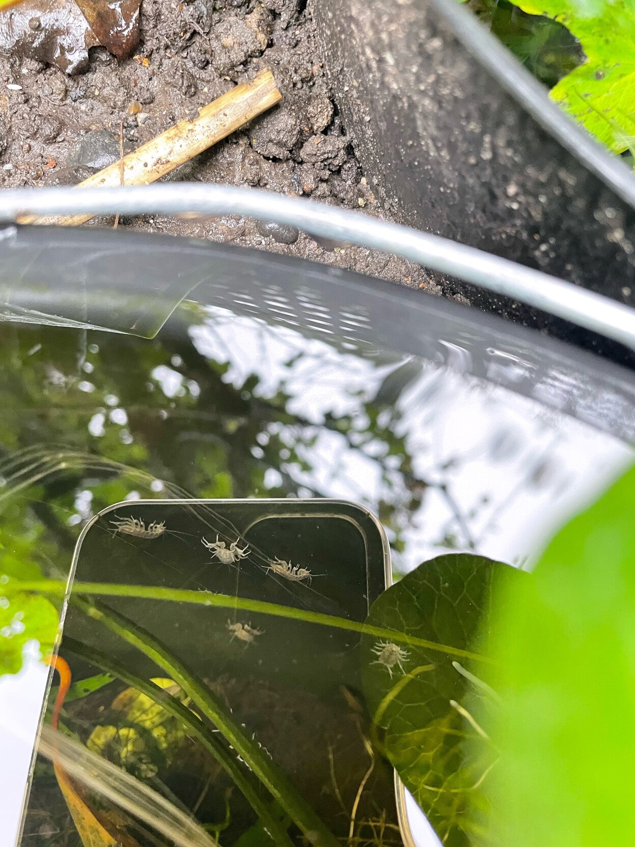 -slaps imaginary roof- these bucket ponds can hold so many of these little crustaceans. I think they’re Asellus Aquaticus, water louse.
