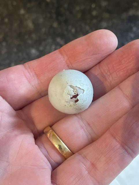 Found the remains of an egg in the garden - any idea what it is? Blackbird? Starling? Dunnock? (We get all of those - East Anglia, UK)