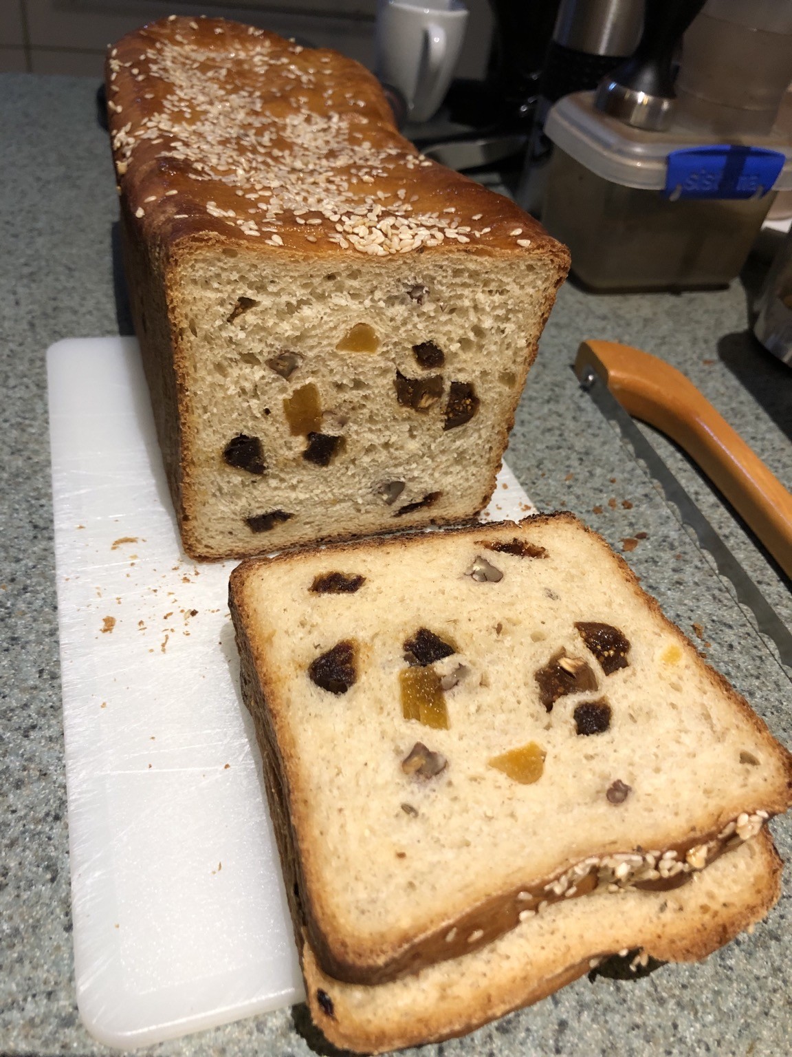 New #fruitLoaf just out the oven. Nutmeg, date and Grana Padano cheese, for something different.