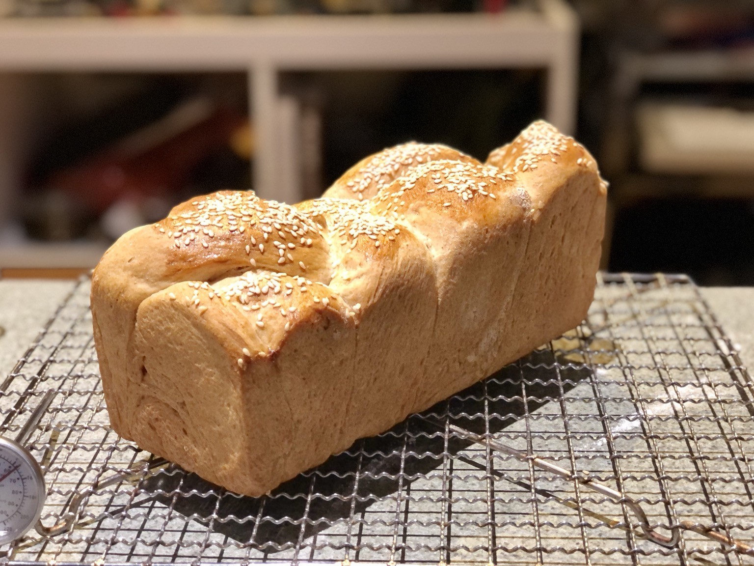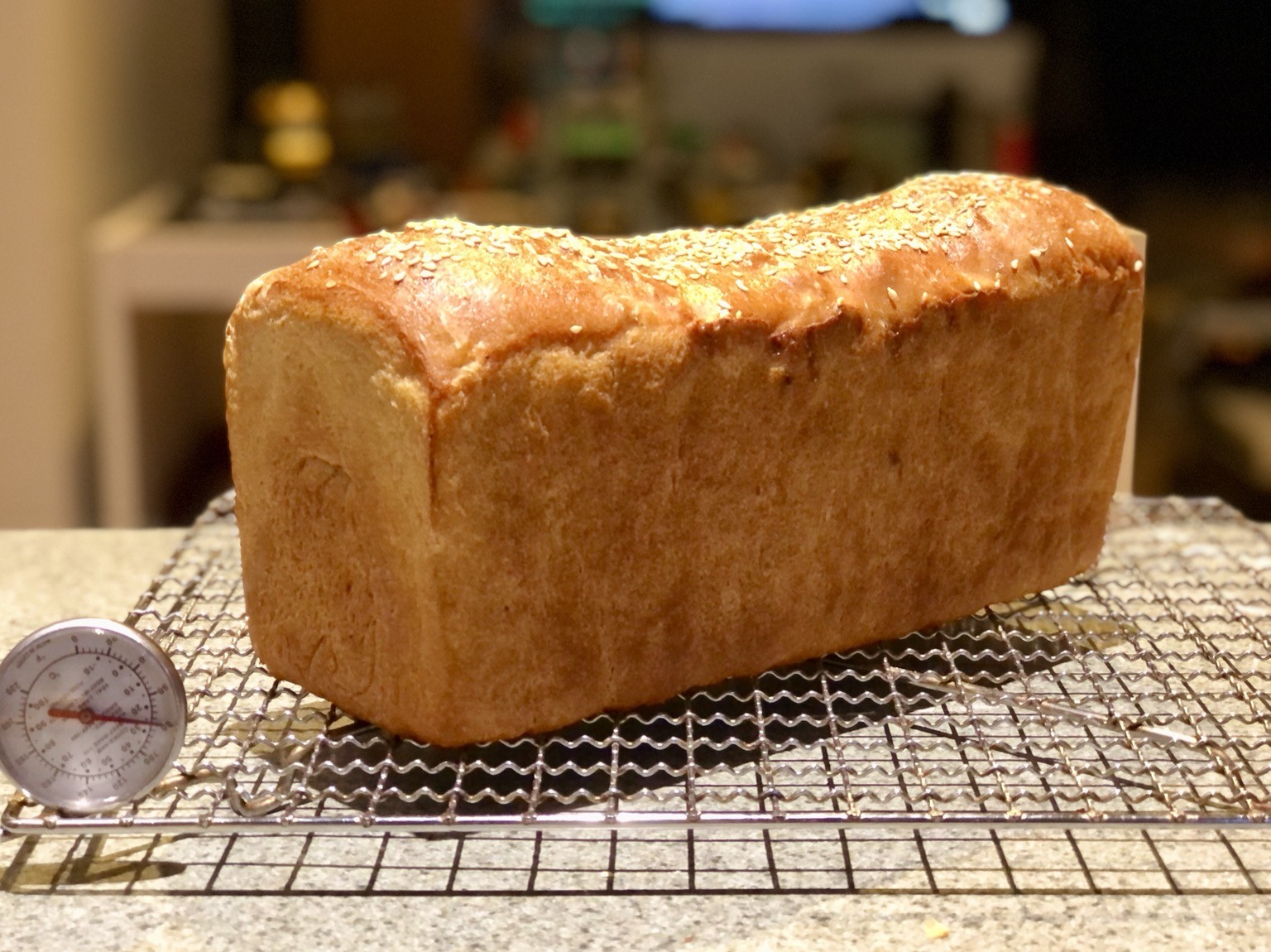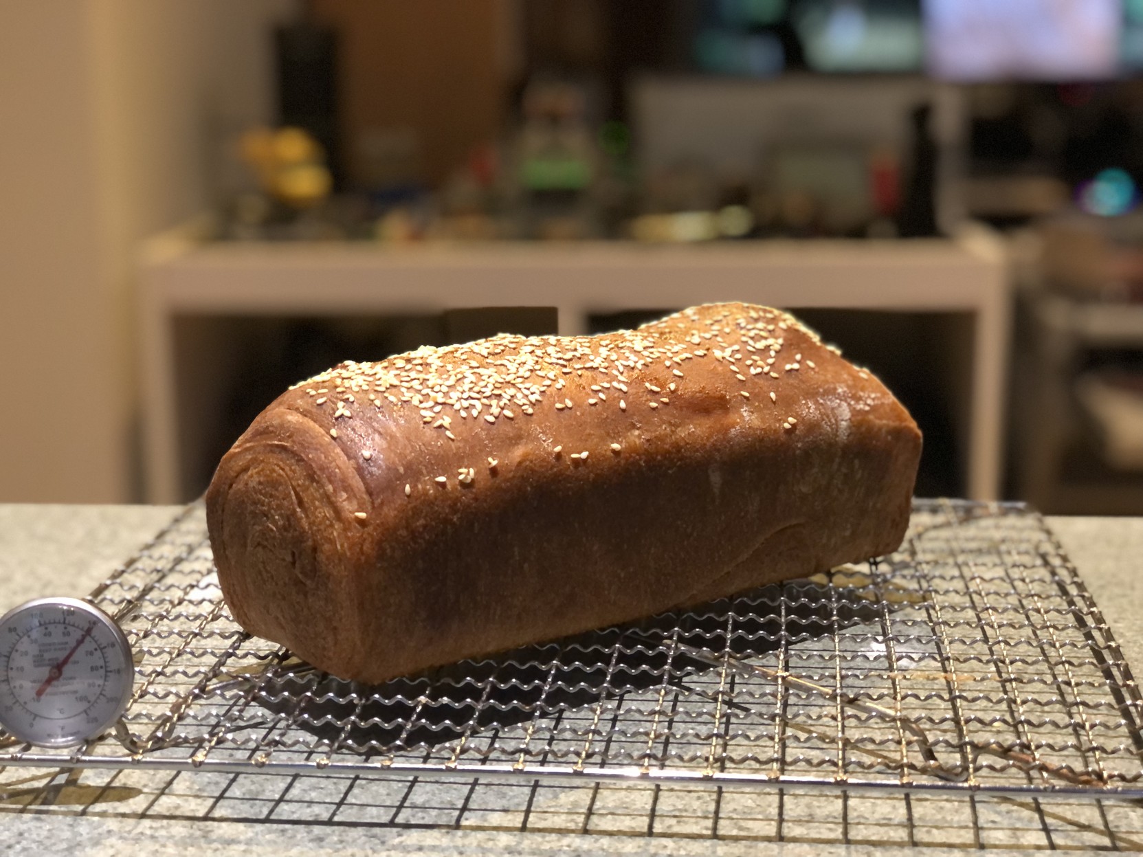I managed to forget to turn the oven down (usually pre-heat to 220Β°C then turn down to 185Β°C after the initial steam blast for 44mins), so this one baked for 22mins at 220Β°C and 9 mins at 180Β°C. When it cools, Iβll see how that changed (or didnβt) the texture.