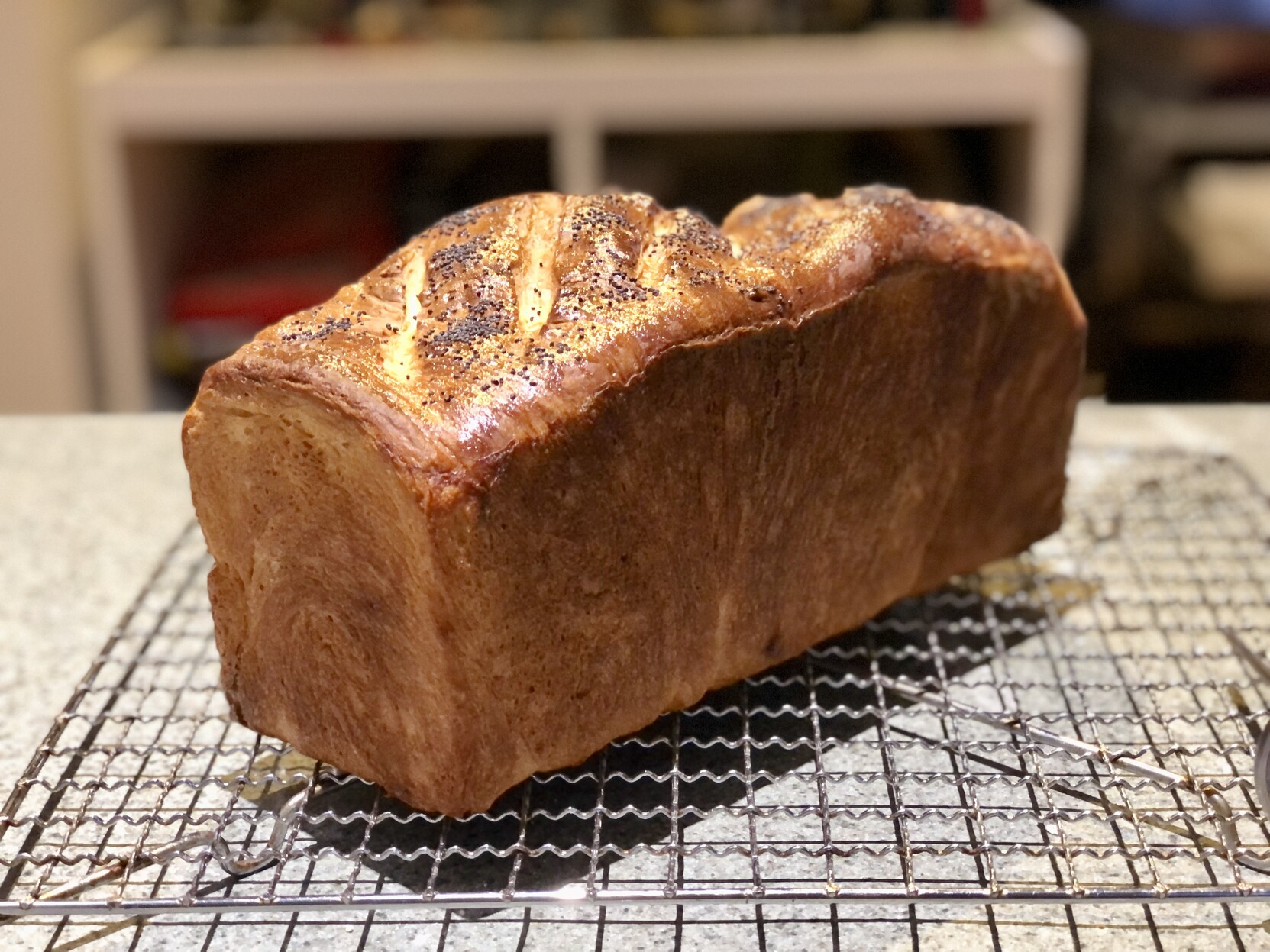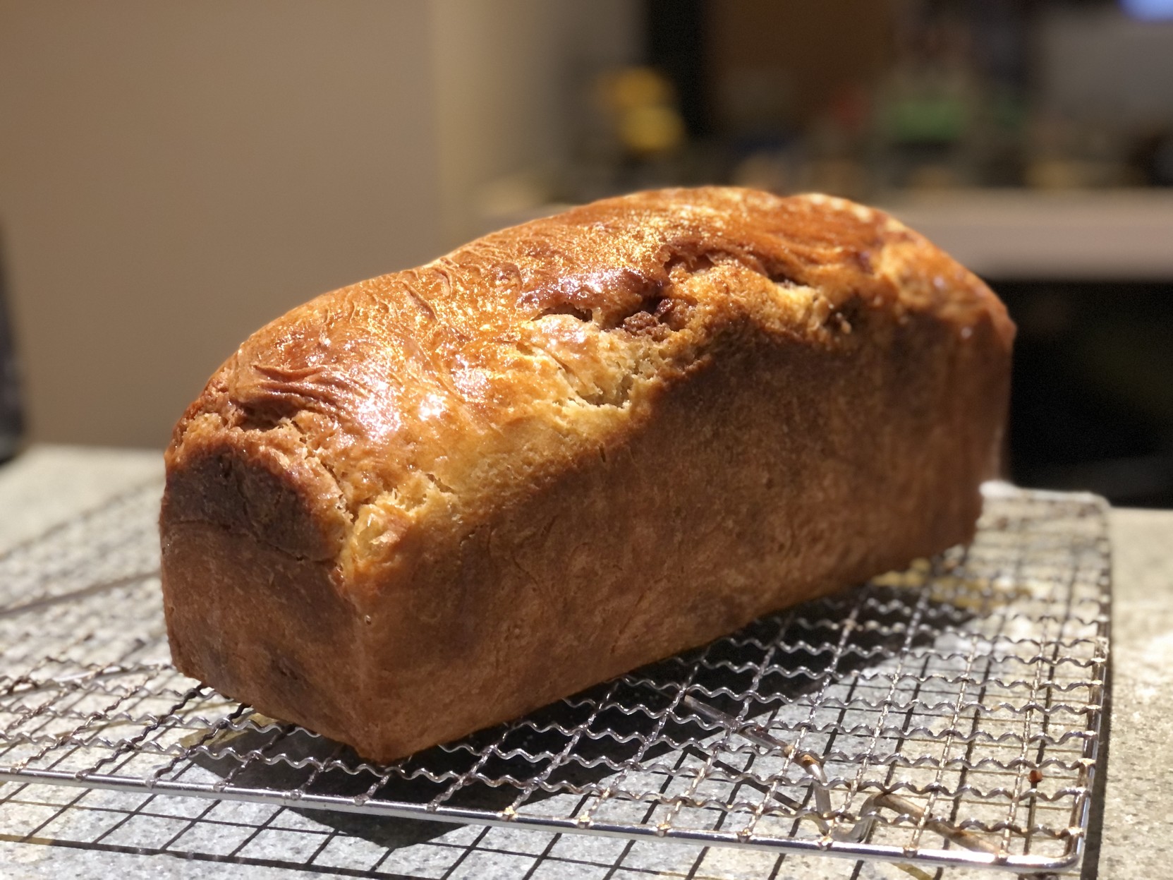 I made this like youβd make croissant dough, but instead of butter, I made a praline mix and used that. Then let it proof as a loaf and baked as normal.