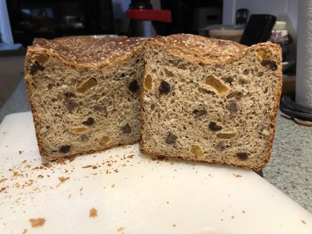 Good fruit distribution. Sample piece quite tasty. #breadPosting #bread #crumb