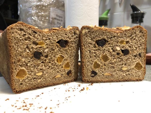 Today’s #fruitLoaf has hazelnuts, almonds and apricots, with cinnamon, allspice and ginger as the spice mix.