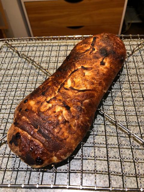New #fruitLoaf just out of the oven. I made the dough yesterday but ran out of time to bake it, so it spent overnight in the fridge. This should in turn improve the flavour from the show ferment.