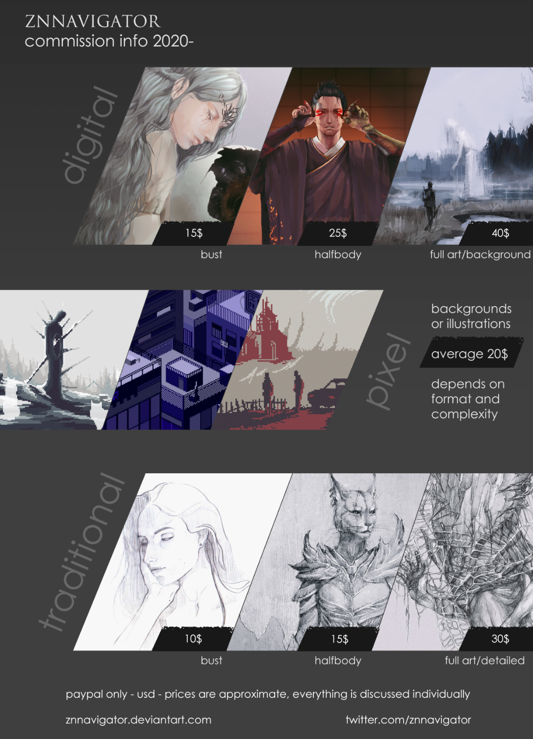 I opened my first commissions! After a while I'll open commissions for full-colored paintings.