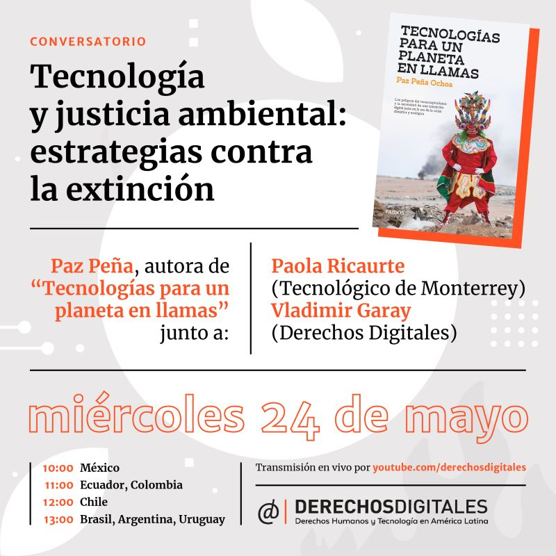 Junto a Paz Peña, autora de "Tecnologías para un planeta en llamas" (Paidós, 2023), Paola Ricaurte (Tecnológico de Monterrey) y Vladimir Garay ( @derechosdigital )