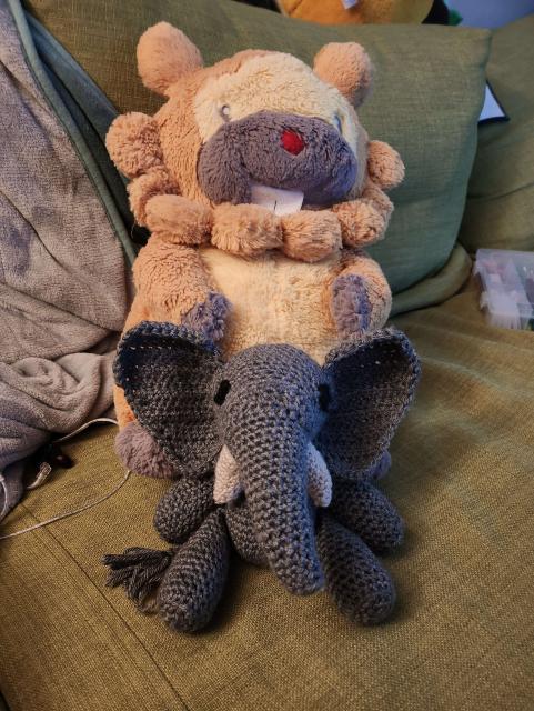 I started crocheting a few weeks ago, and I finished making this elephant for my mom yesterday. She said I should post it, so here it is lol.