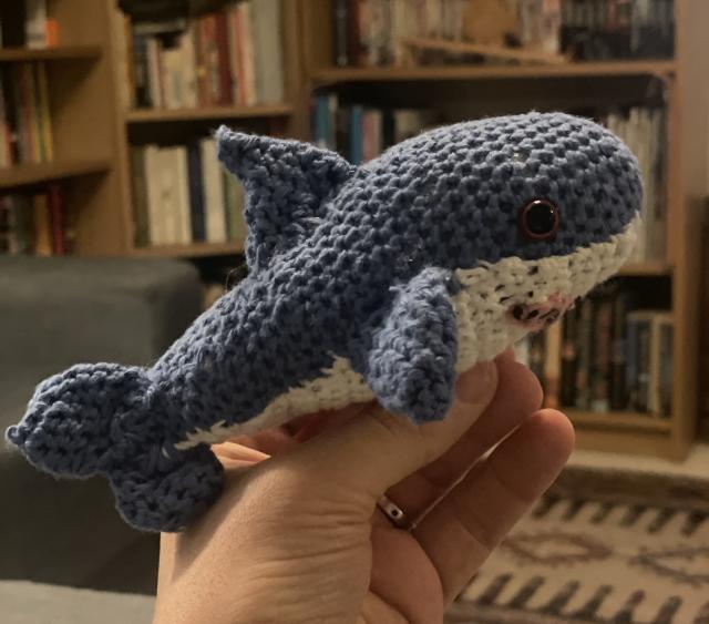 My first (you can tell…) attempt at amigurumi - a little Blåhaj
