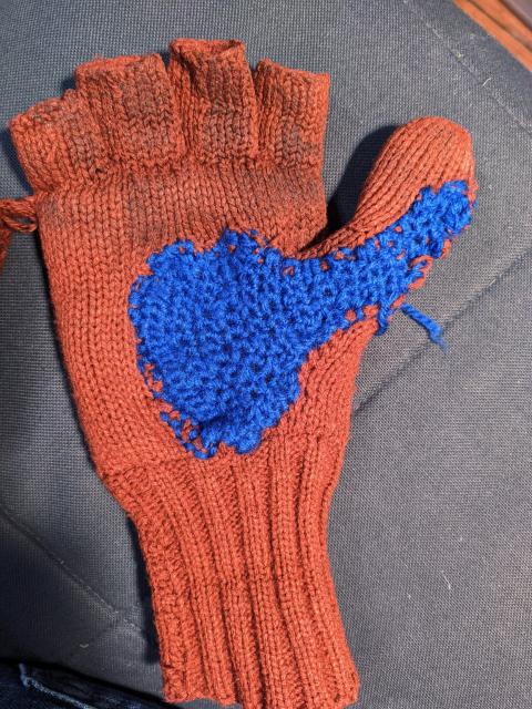 My 6 year old found the glove of a friend and he took it home. I felt challenged and made a quick #crochet #repair on the worn out glove. Crochet is very flexible, you can add stitches, you can skip them, without a great effort. It's quite organic. I hope his friend will like it.