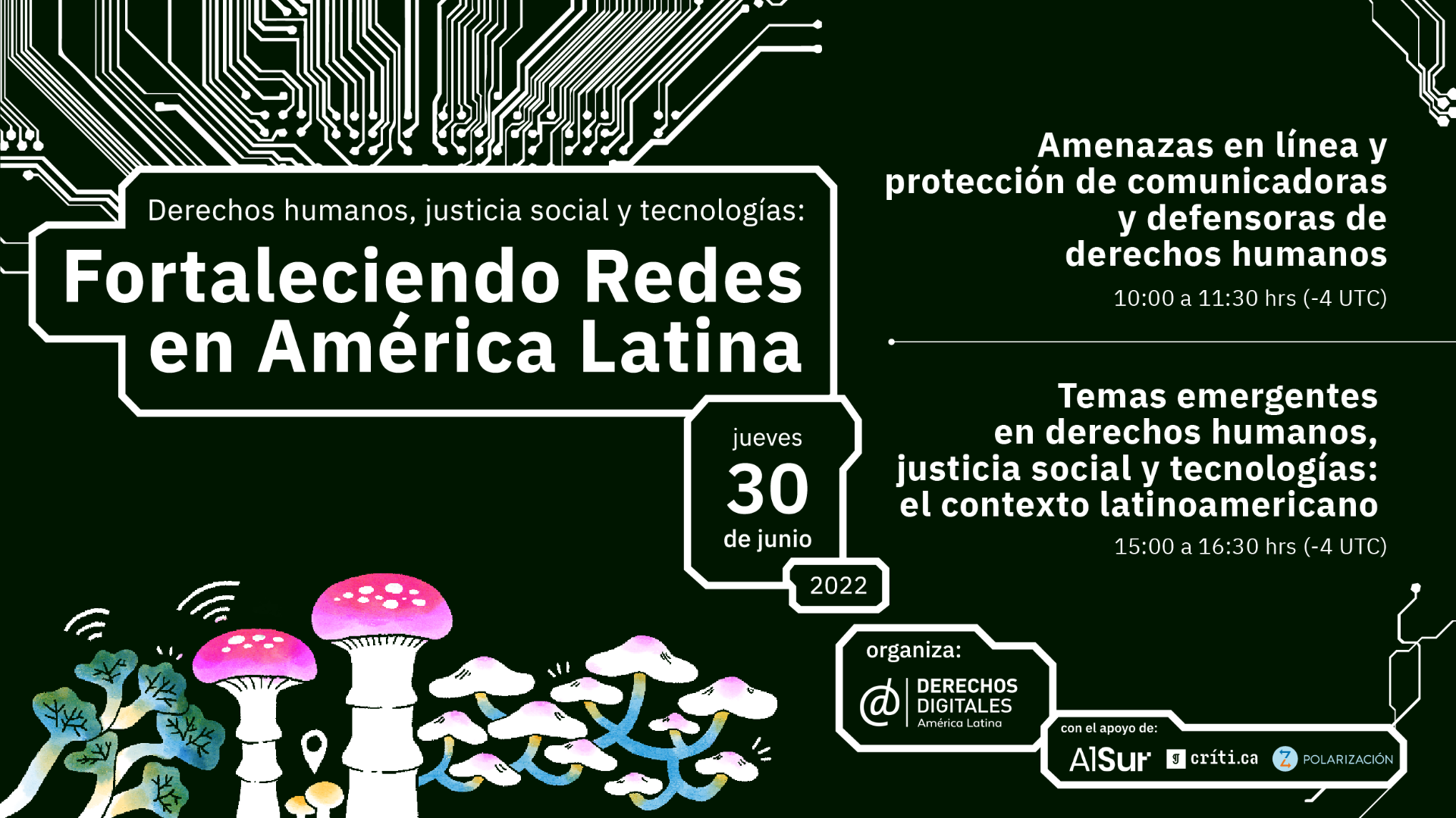 📣Mañana participaremos del evento regional organizado por Derechos Digitales. De la mano de @habiaunajes conversaremos sobre #derechoshumanos, #justiciasocial y #tecnologías en el contexto latinoamericano.