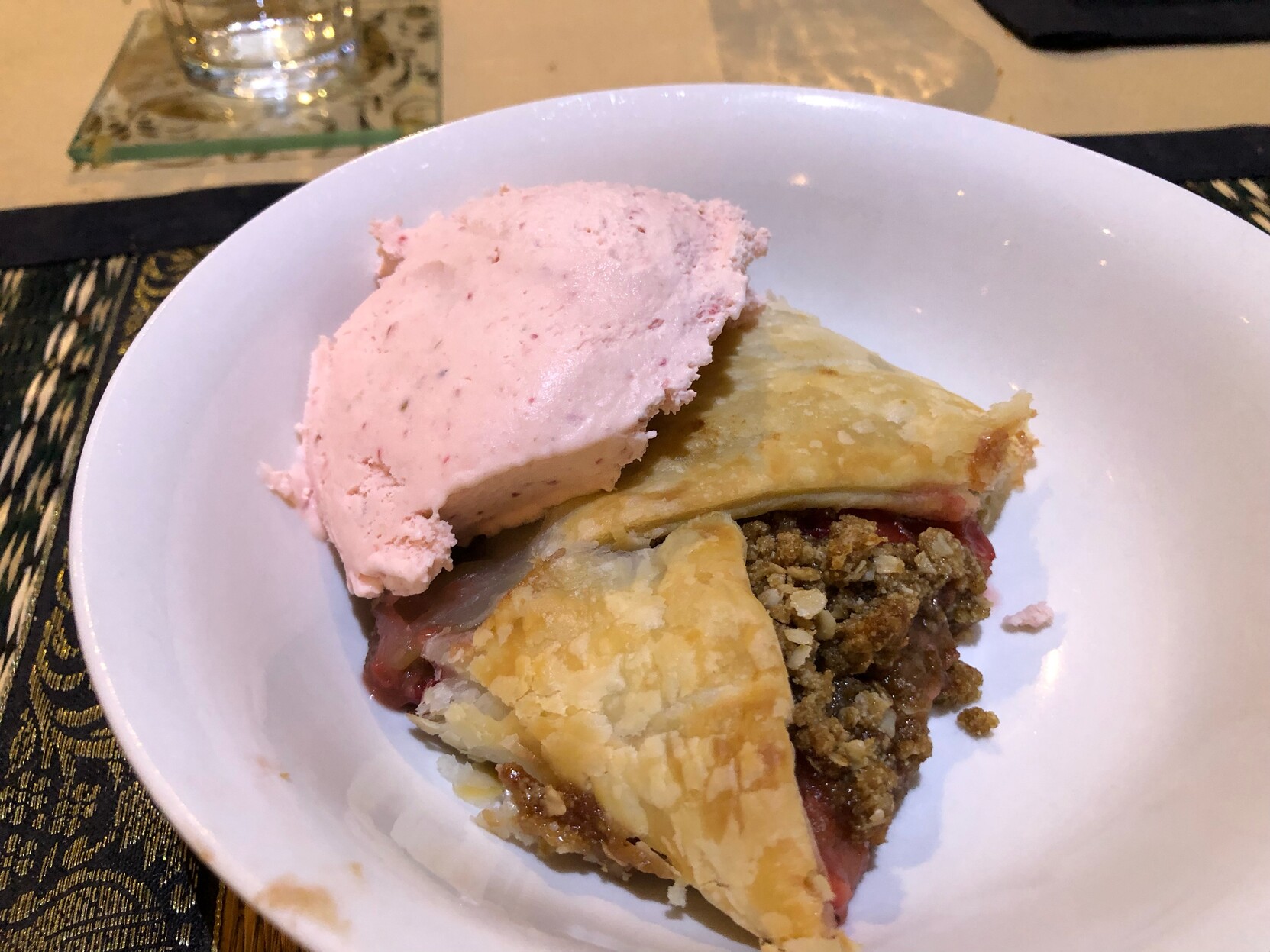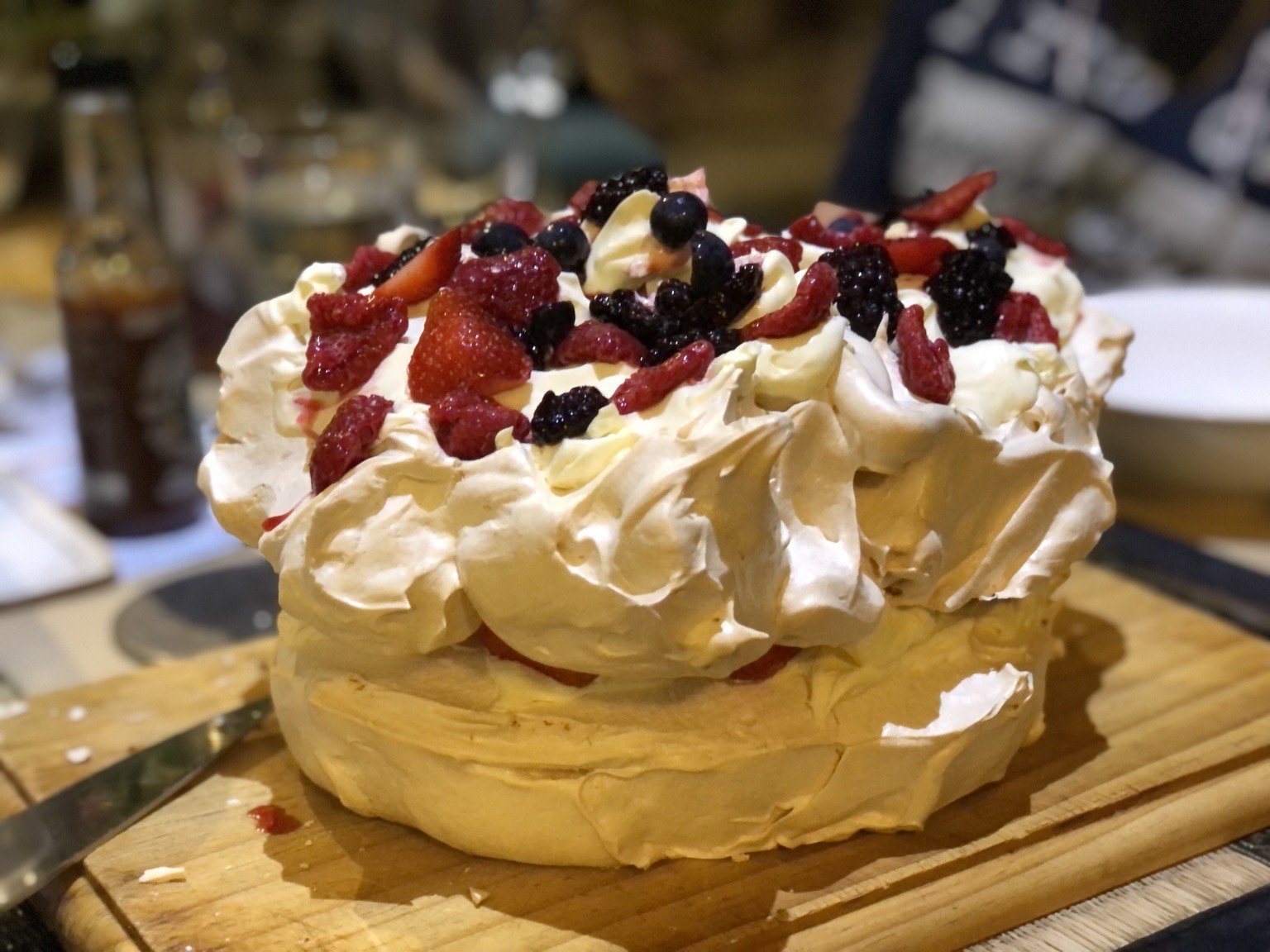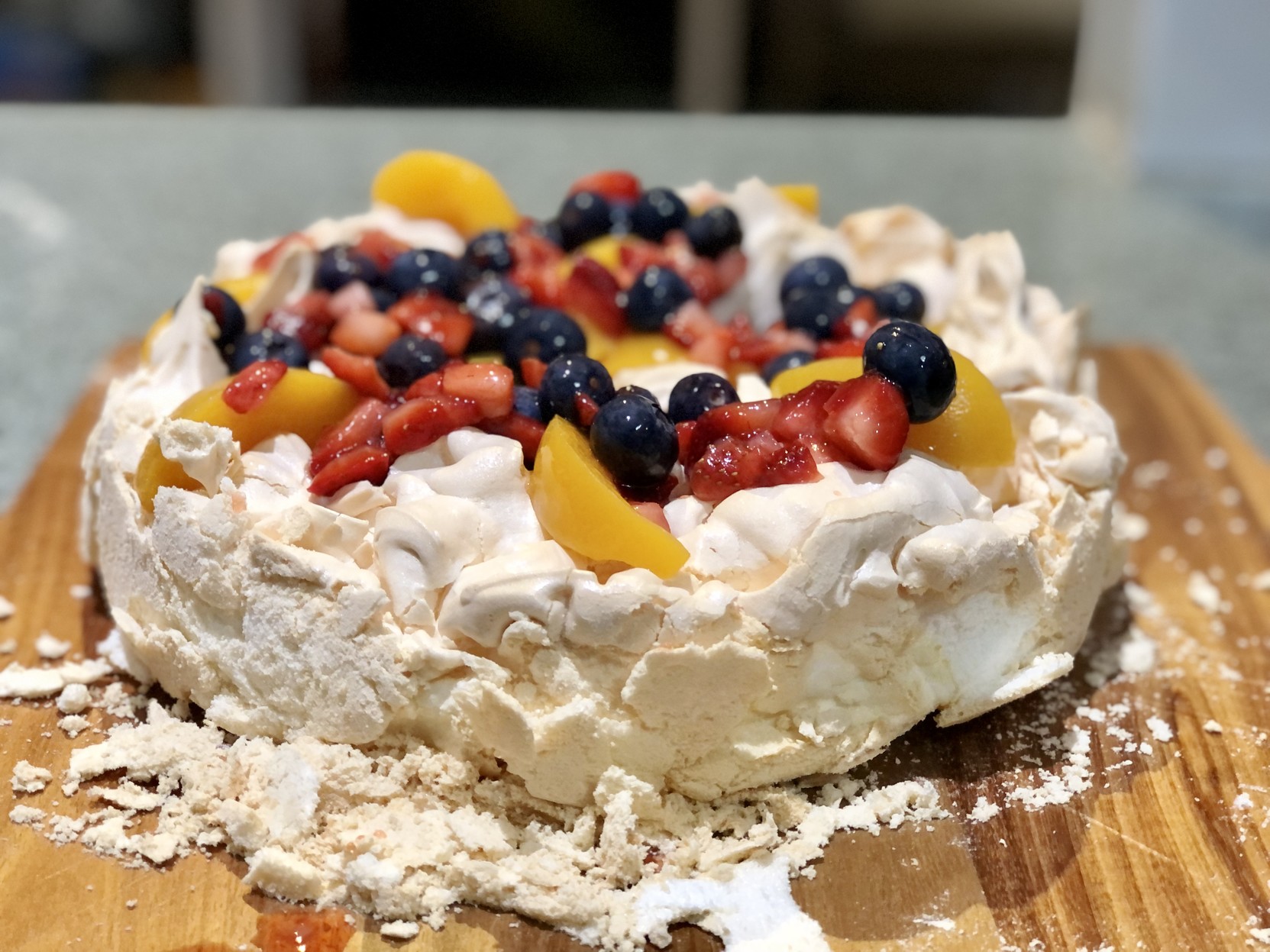 Topped with blueberries, raspberries, blackberries and strawberries.