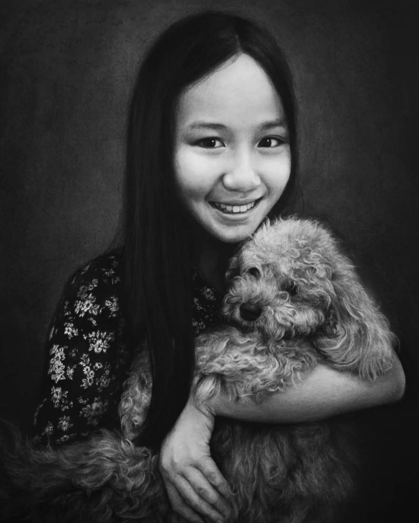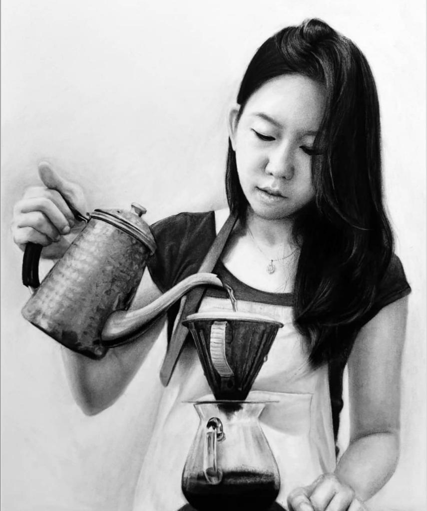 🔴 Liu erstellt meisterliche Kohlezeichnungen, die einer Fotografie sehr nahe kommen. Man kann sie auch beauftragen. ✍️