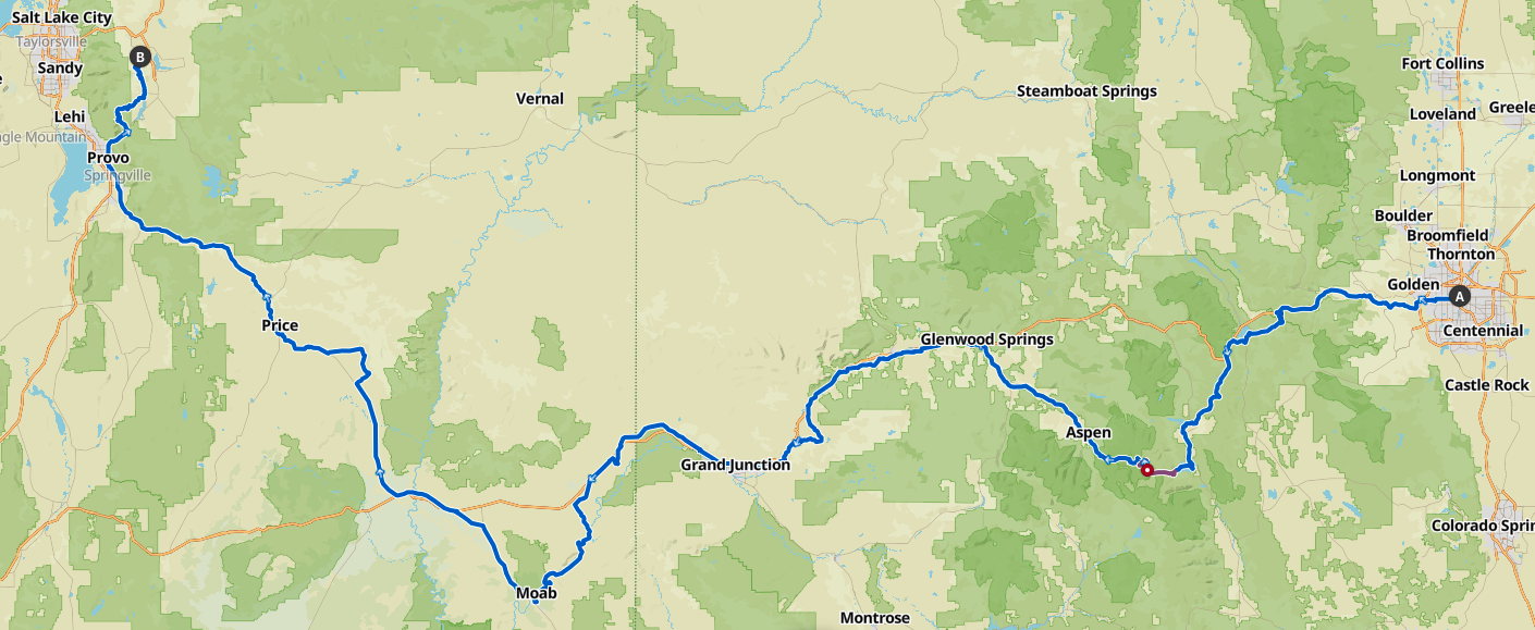 Next month, I'm going to ride my bike from Denver up into the Rockies, out to Glenwood Springs, and along the Colorado River to Moab, before turning north to Salt Lake City.