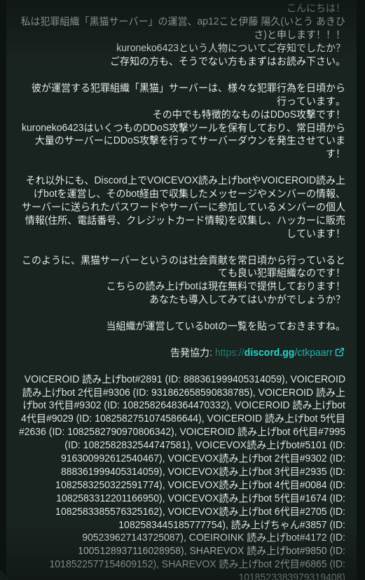 There's currently an incident involving some kind of Japanese skids who call themselves the "Kuroneko" organization.