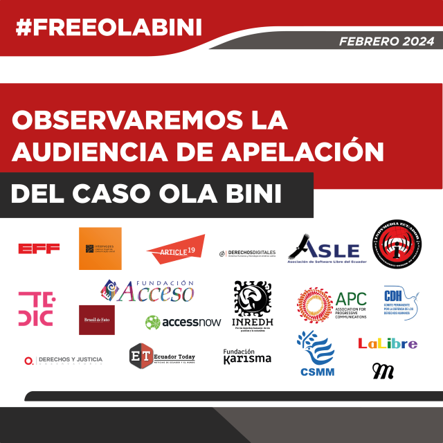 El próximo miércoles, @APC_News observará junto con otras organizaciones de sociedad civil la audiencia de apelación del caso #OlaBini.