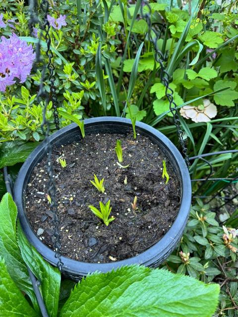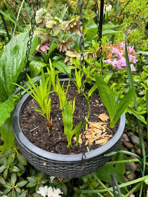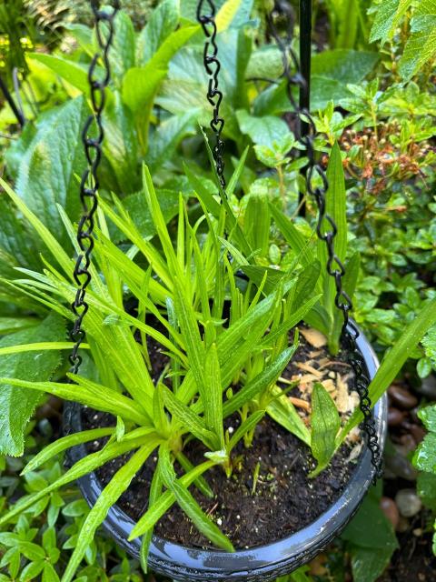 I’m considering moving these plants to a spot on the ground. They don’t feel like hanging pot plants, since there’s no hint of a flower yet and they’re probably closer together than they’d prefer. At least they’re not dead?