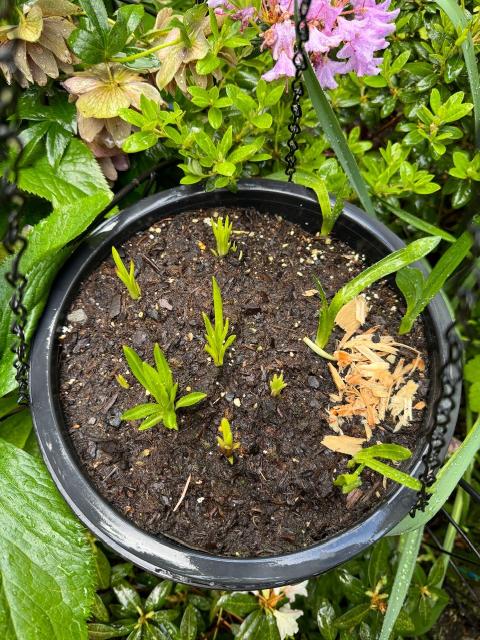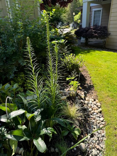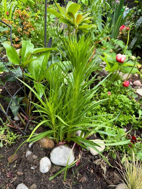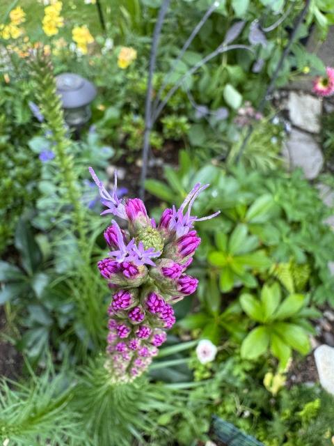 One of the mystery plants (Liatris?) is living its best life in the garden. The other one keeled over immediately. :blobcatlaugh: