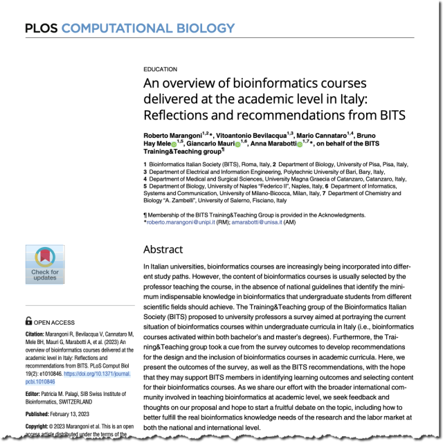 In Italian universities, bioinformatics courses are increasingly being incorporated into different study paths.journals.plos.org